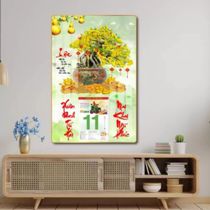Mẹt tre lớn trang trí tiểu cảnh tết chữ thịnh vượng sắc đỏ bánh chưng xanh mẫu 186
