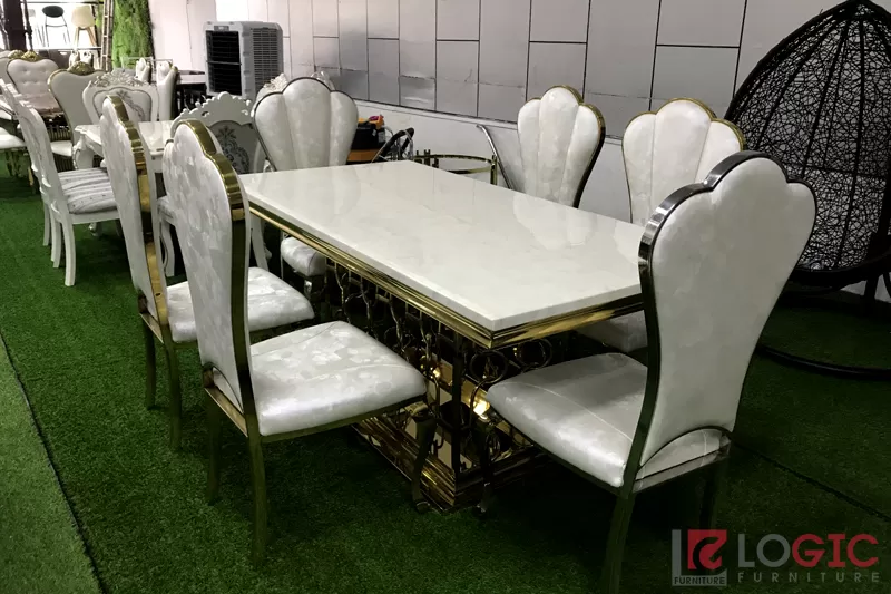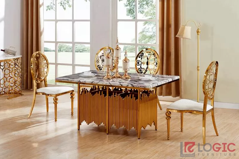 Bộ bàn ghế ăn cao cấp inox mạ titan BTT-03