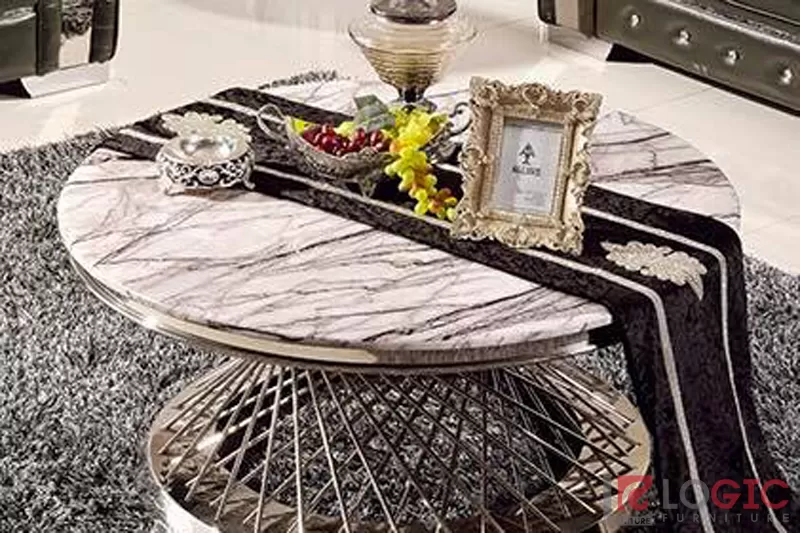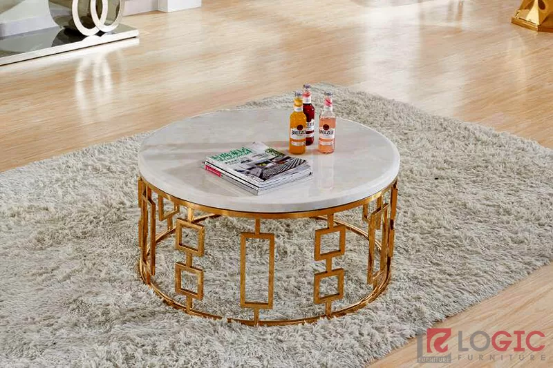 Bàn bàn trà mặt đá cao cấp inox mạ titan BTT-04