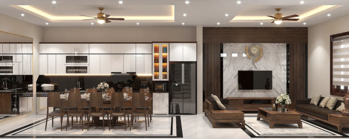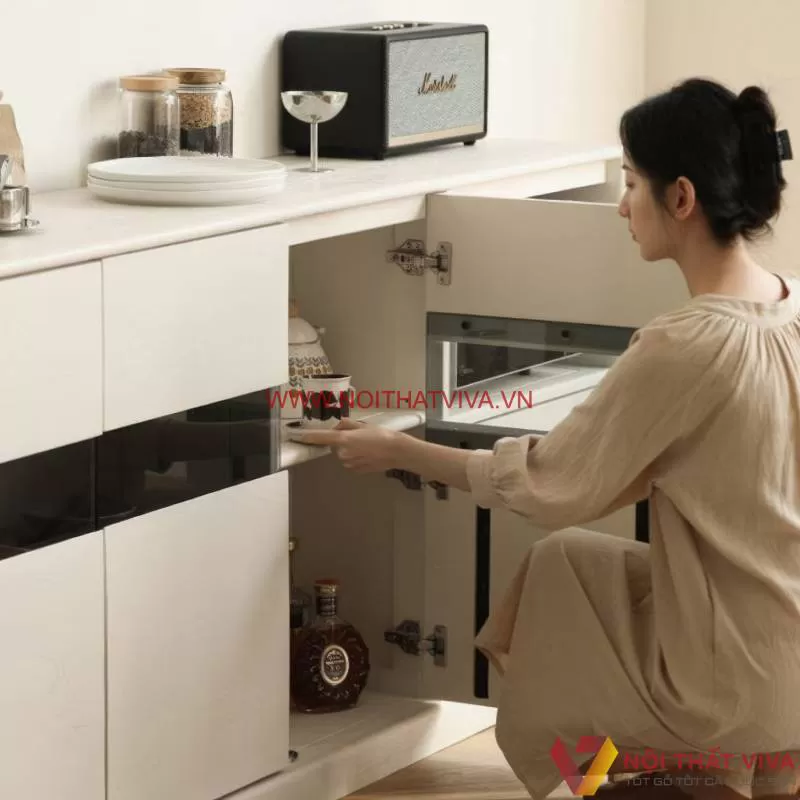 Mẫu Tủ Bếp Gỗ Mdf Phủ Melamine Kết Hợp Đảo Đá Hiện Đại