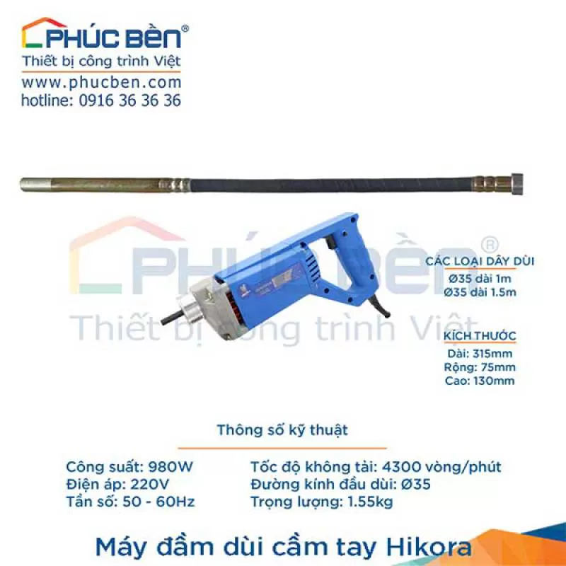 Máy đầm dùi bê tông cầm tay Hikora