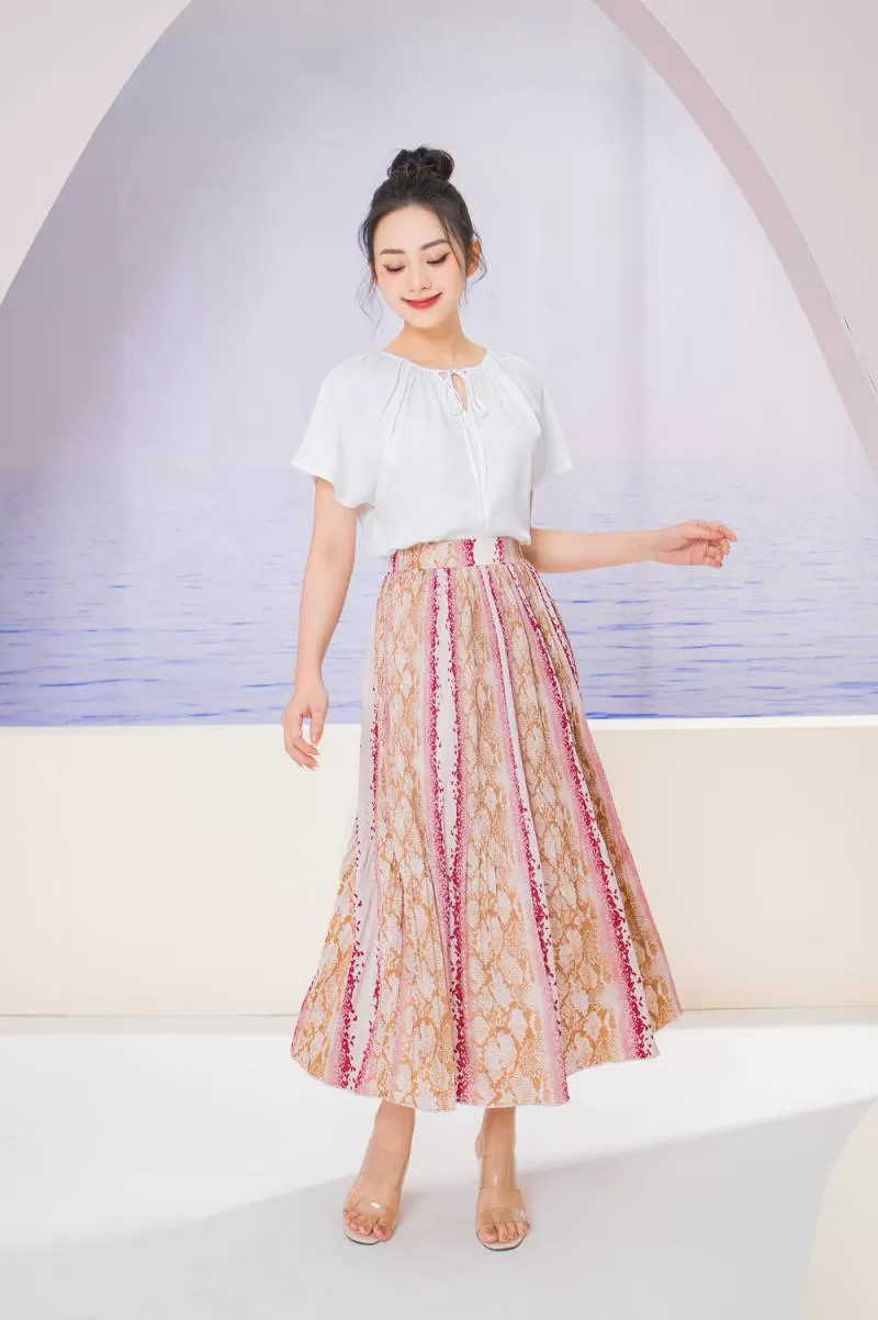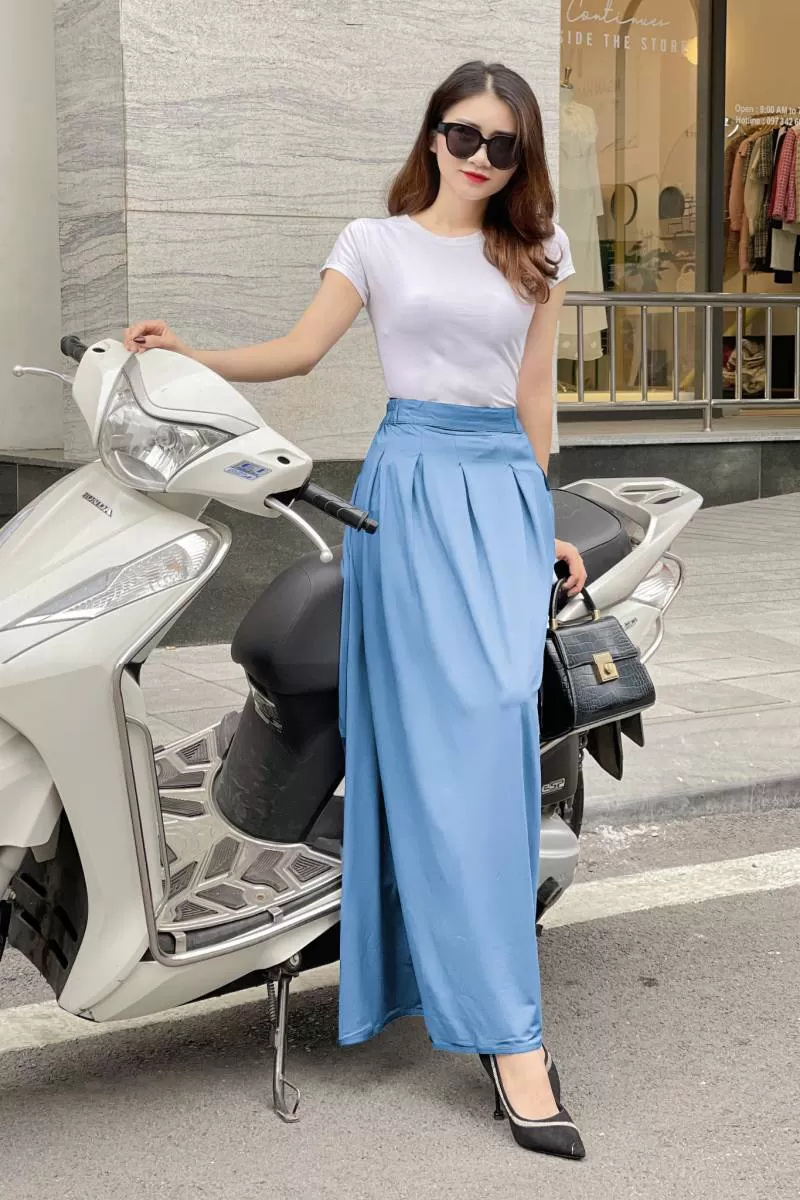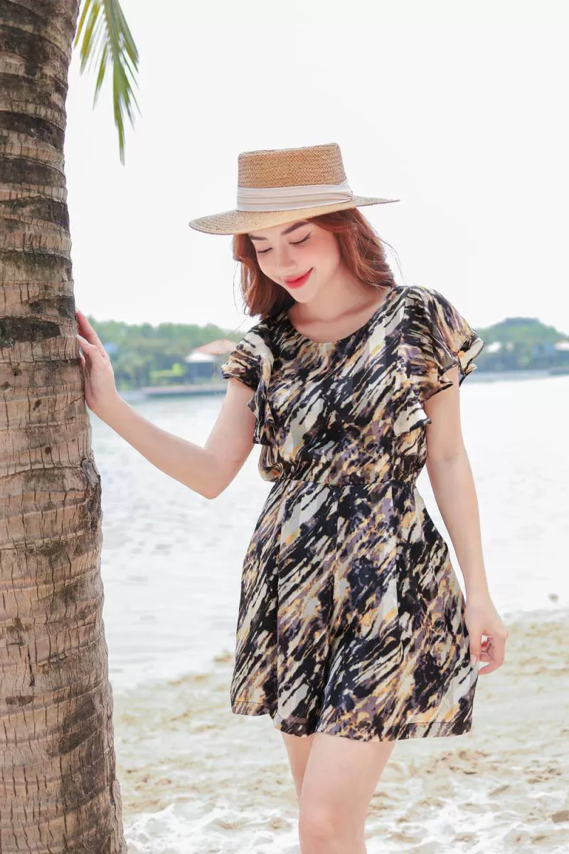 Jumpsuit ngắn giả váy chất liệu tơ tằm, kiểu dáng vai bèo quần đùi quyến rũ hiện đại