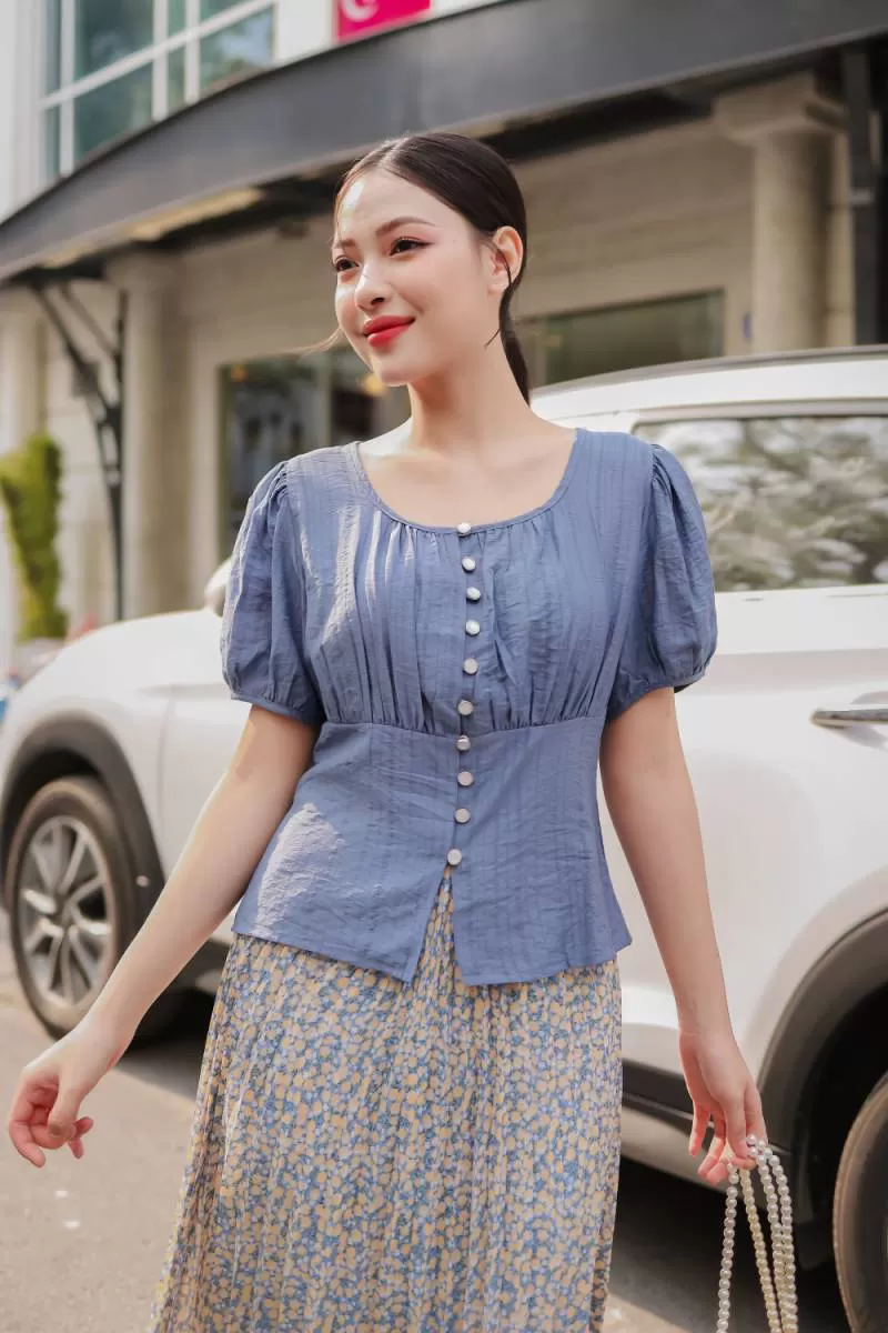 Áo thô can eo tay bồng cổ vuông nữ tính, tôn trọn vòng eo thon gọn, không lộ bụng