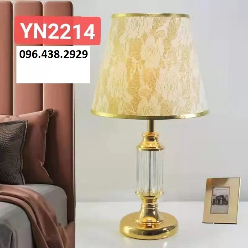 Đèn để bàn phòng ngủ LED E27 chụp vải hoa văn cao cấp trang trí phong cách Bắc Âu đơn giản hiện đại TL-DB-YN2214