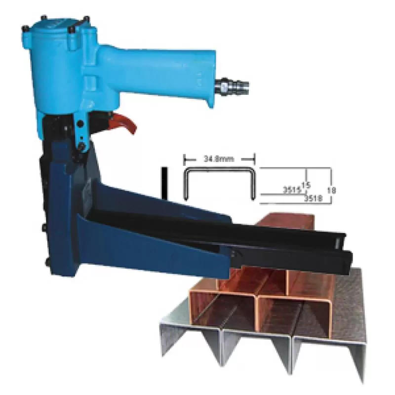 * Súng bắn ghim thùng carton bằng khí nén của hãngYunicamã3518là dụng cụ chuyên dùng để bấm ghim, dập ghim đóng miệng thùng carton, súng sử dụng lực khí nén để cắm ghim vào thùng sau đó suốn cong ghim và ép ghim khóa chặt ghim lại. Sử dụng súng để bắn ghim giúp công việc được thực hiện nhanh chóng, Thùng carton Không bị móp méo như dập ghim bằng tay ( vì dập ghim bằng tay phải dùng sức nặng của cơ thể tì xuống để đóng ghim nên dễ gây móp thùng ), Hãy liên hệ với chúng tôi để được tư vấn và báo giá tốt nhất cho thiết bị này. * Hãng sản xuất :YUNICA - Áp lực khí nén :3.5 - 6 kg/cm2 - Kích thước đinh (mm) :35x18 - Số đinh nạp tối đa (chiếc) :150 - Tính năng :- Ghim 3515 - Ghim 3518 - Dúng khí nén - Kích thước (mm) :200x250x120 - Trọng lượng (kg) :2.2 - Xuất xứ :TaiwanShipping/Vận chuyển