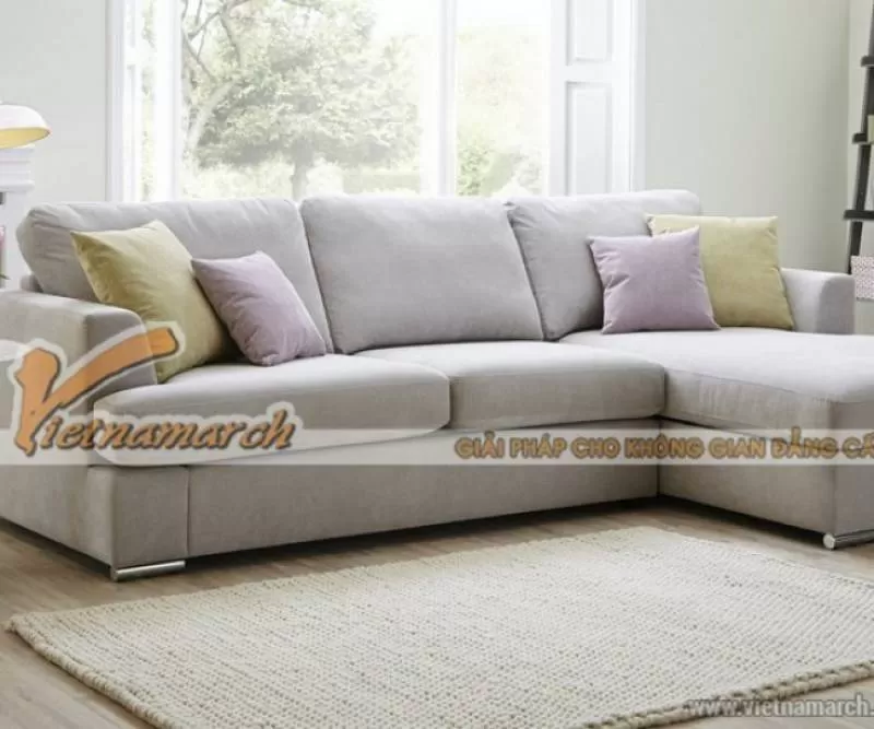 Mẫu ghế sofa trắng sáng dáng góc nhẹ nhàng nữ tính cho phòng khách – Mã: SVG-028