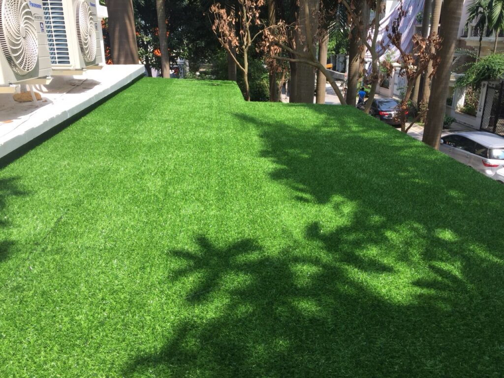 Hiện nay thảm cỏ nhân tạo được hầu hết các kiến trúc sư đưa vào các công trình thiết kế cho khu vực ngoài trời như ban công, sân thượng, khu vực tổ chức sự kiện ngoài trời của nhà hàng, khách sạn. Ngoài những ưu điểm là đẹp và bền, giá thành thấp thì ưu điểm nổi bật nhất của cỏ nhân tạo là dễ dàng thi công và nhanh chóng.