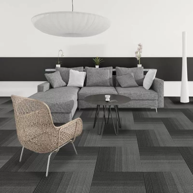 Thảm gạchHAWAII họa tiết chuyển màu sắc từ đậm sang nhạt từ đó tạo nên hiệu ứng 3D rất đẹp mắt. Thảm Hawaii 04là thảm xám và đen xen kẽ, tông lạnh phù hợp làm thảm văn phòng, thảm trải hành lang, thảm lót showroom.