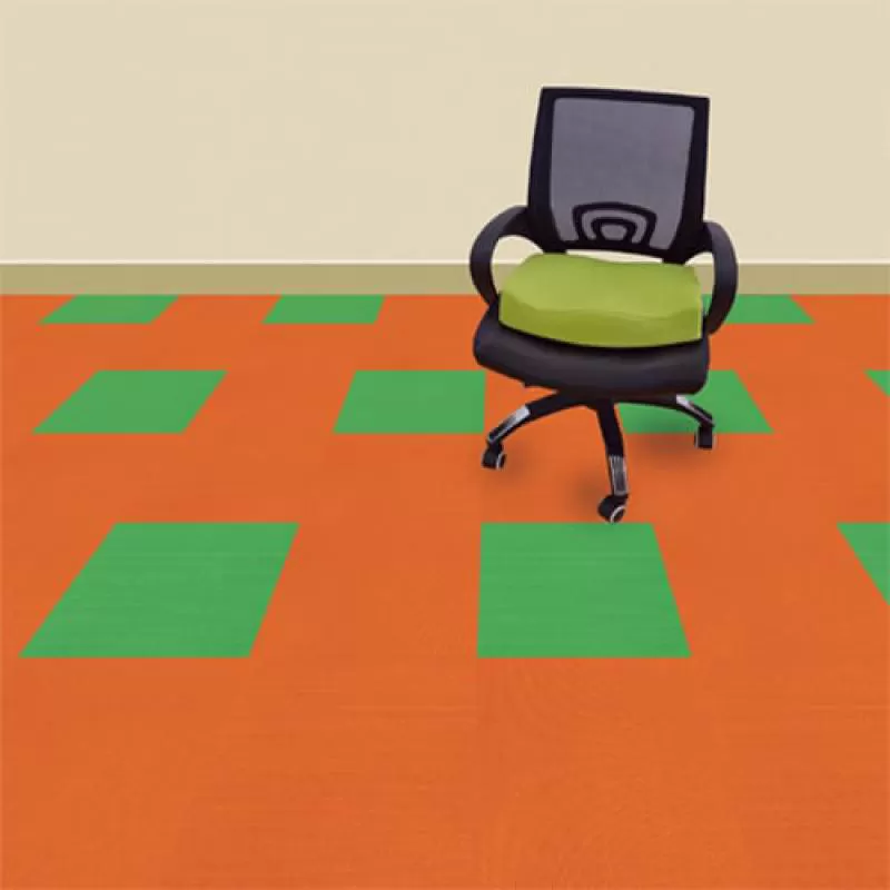 Thảm gạch JHT110có tông màu cam rực rỡ, phù hợp với các thiết kế lắp đặt sáng tạo, tạo hiệu ứng riêng, dùng làm thảm trang trí, hoặc phối hợp với thảm màu trơn khác làm thảm văn phòng.