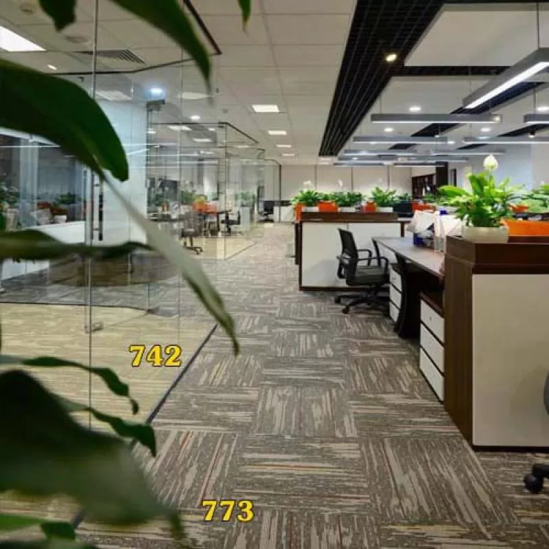 Sử dụng 2 màu thảm văn phòng: mã 742 dùng lắp khu làm việc riêng của quản lý, mã thảm Mexico 743 lắp cho toàn bộ khu làm việc chung, bên ngoài.
