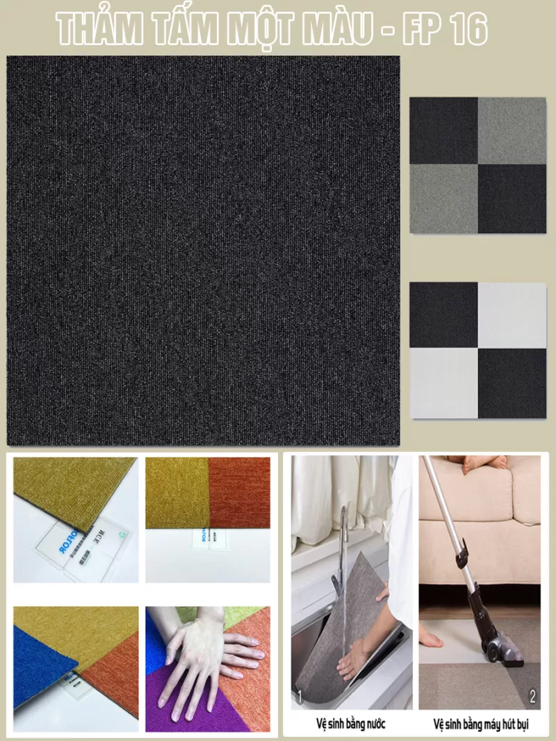 Đặc biệt thảm tấm có rất nhiều màu sắc, hoa văn và kích thước khác nhau để bạn có thể tự ghép theo mẫu thiết kế, sở thích của mình như ghép caro 2-3 màu với nhau, ghép kẻ sọc đan xen vào nhau.