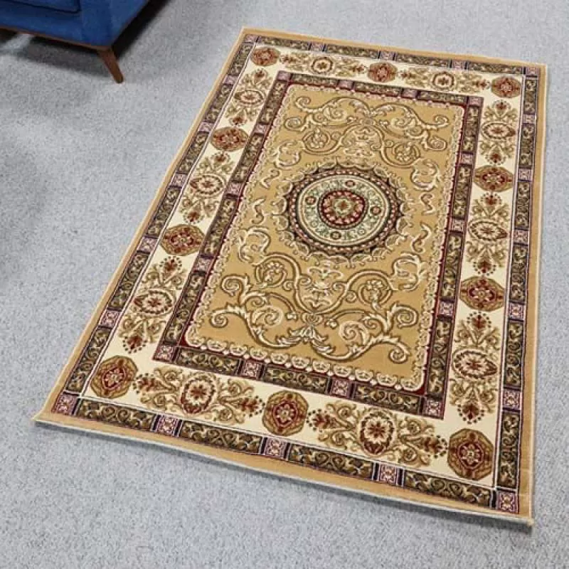 Thiết kế của thảm sofa5310 BE là dạng hình bông oval điểm ở giữa, tông thảm kem, phù hợp với nội thất cổ điển hoặc nội thất đồ gỗ.