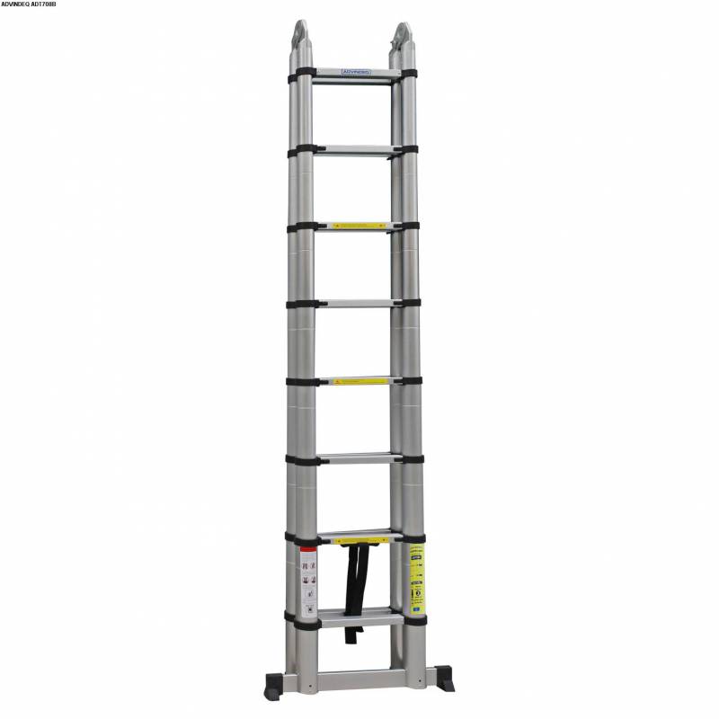 – Thang nhôm rút gọn (chữ A) Advindeq ADT708B là loại thang rút đa năng có thể dựng chữ A cho người sử dụng đứng mà không cần có điểm dựa vào, ngoài ra thang còn có thể dựng đứng lên chữ I với chiều cao gấp đôi so với chữ A. Với công dụng đa năng và đặc biệt là thang khi rút gọn lại chỉ 0,95 mét rất dễ dàng di chuyển thì thang nhôm rút chữ A là sự lựa chọn hàng đầu của khách hàng khi có nhu cầu.