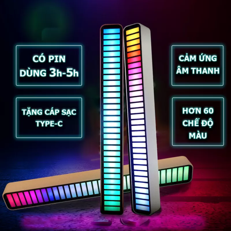 Thanh LED RGB nháy theo nhạc với độ cảm âm chuẩn hơn, tích hợp pin sạc và điều khiển qua APP trên điện thoại Với 32 mắt LED RGB cảm biến theo âm thanh, chức năng đón micro và lọc tiếng ồn có độ nhạy cao, 4 chế độ hiển thị và hơn 60 sự kết hợp màu sắc, làm cho âm nhạc trở nên sống động THÔNG SỐ KỸ THUẬT - Thu tín hiệu: