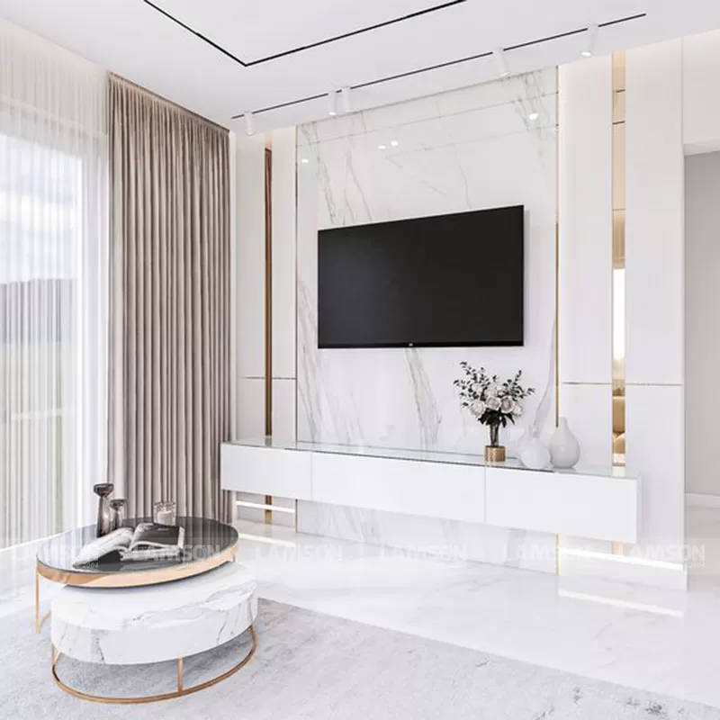 Chất liệu chủ đạo: Tấm nhựa PVC (giả vân đá) Bảo hành: 12 Tháng Thiết kế và thi công được thực hiện hoàn toàn bởi Nội thất Lam Sơn Hãy để Nội Thất Lam Sơn làm nên không gian sống của gia đình bạnShipping/Vận chuyển