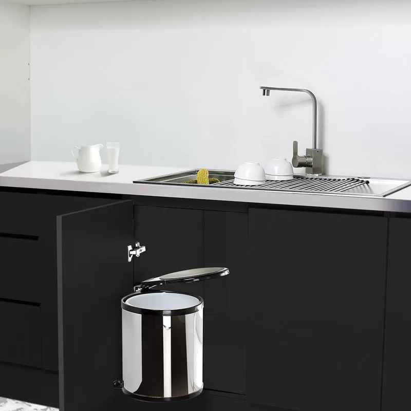 Thiết kế hiện đại với nắp che kín ngăn không cho mùi thoát ra ngoài Ứng dụng cho cửa bản lề, nắp thùng rác tự mở khi mở cửa Hoàn thiện: Vỏ Inox 304 Thùng nhựa Vị trí lắp: Lắp sau cửa bản lề Trọn bộ gồm: Vỏ thùng rác, ruột thùng rác, bas kết nối, bộ ốc lắp đặt