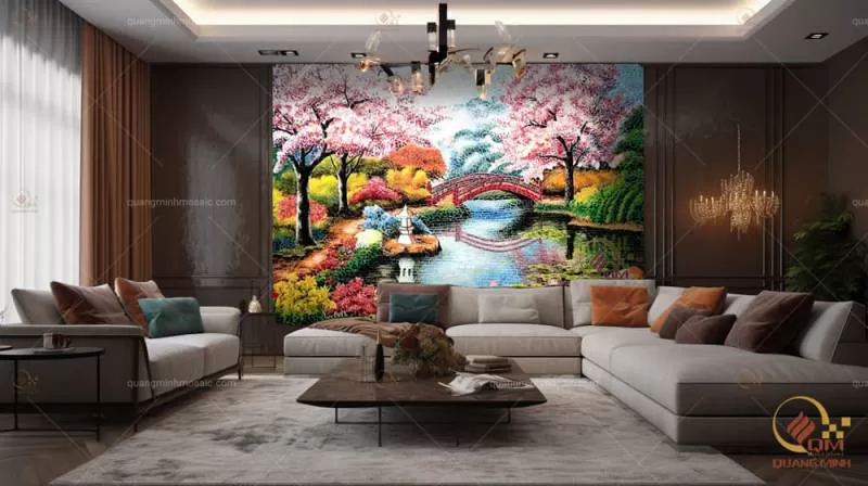 Tranh Mosaic Gốm Rừng hoa Sakura QM-RHS01