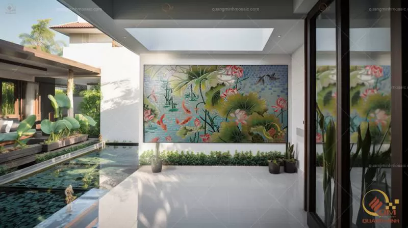 Tranh Mosaic Gốm Sen Cá QM-SCA01