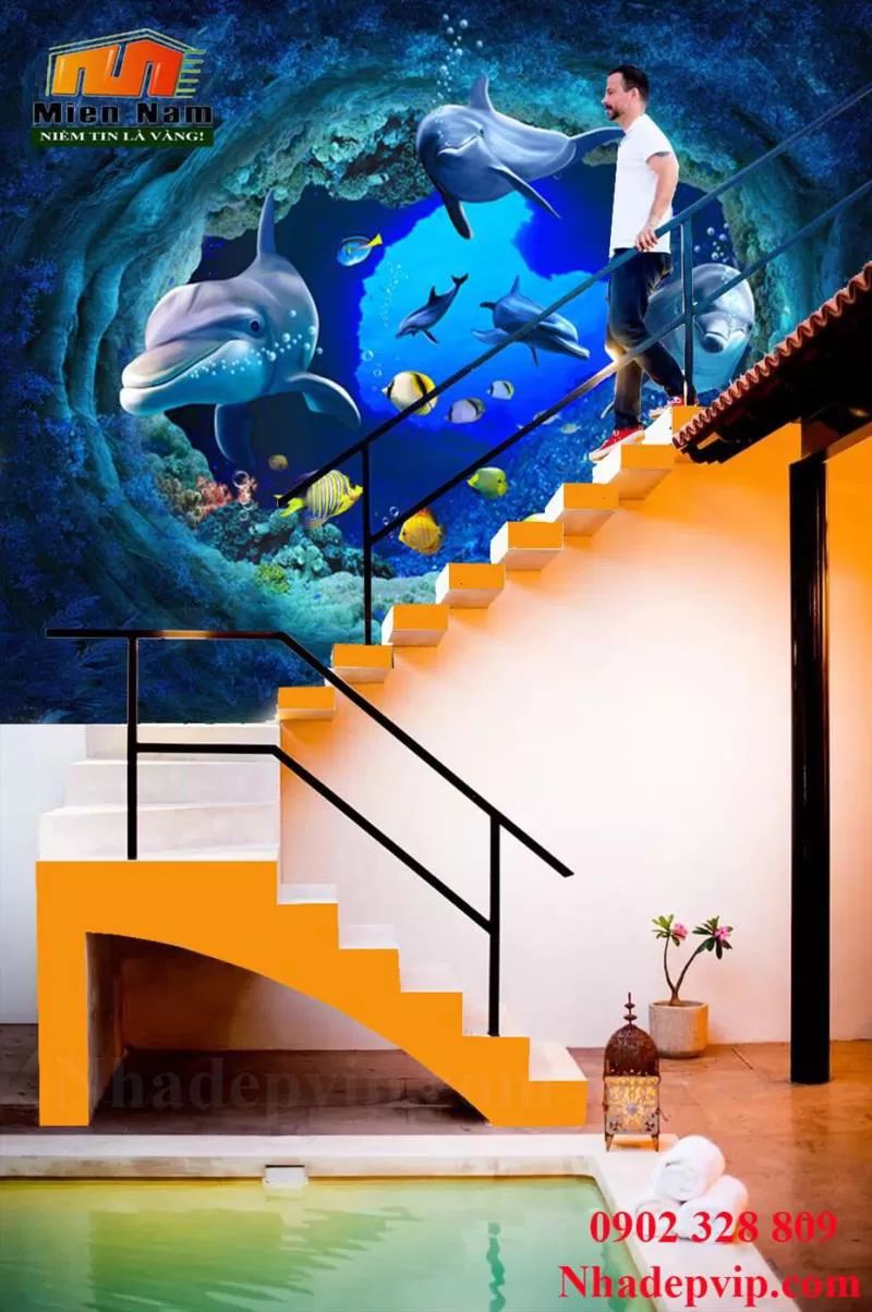 Tranh ốp tường 3D cầu thang CT197Shipping/Vận chuyển