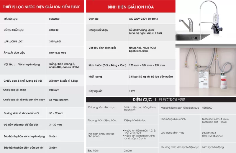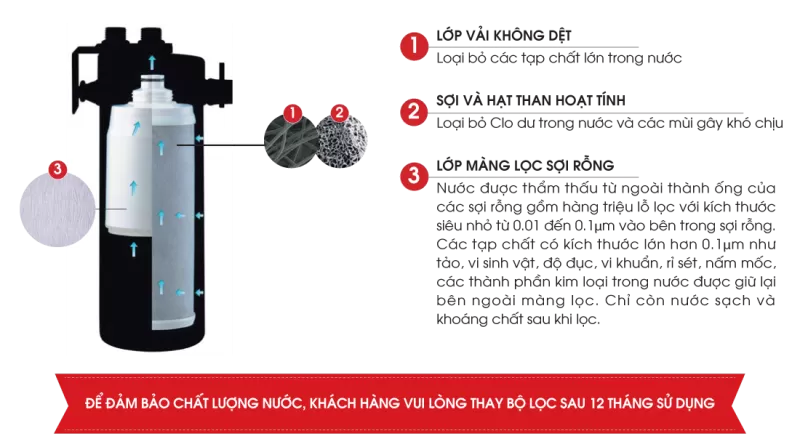 Bộ lọc kép sản xuất tại Nhật Bản Màn hình điều khiển cảm ứng Công suất lọc gần như không giới hạn Kích thước nhỏ gọn, dễ lắp đặt