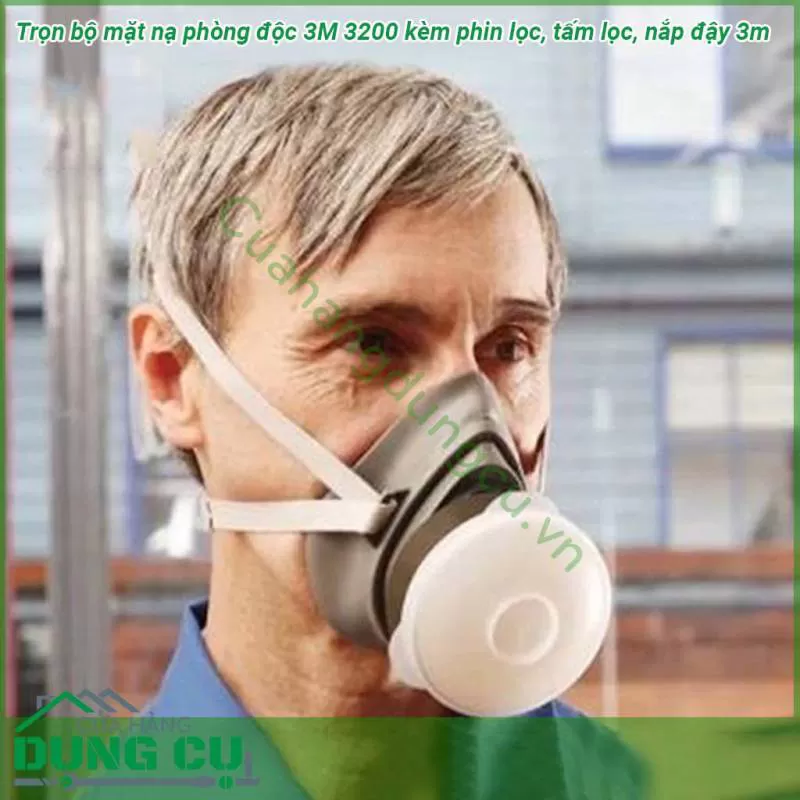 Trọn bộ mặt nạ phòng độc 3M 3200 kèm phin lọc tấm lọc nắp đậy 3m sử dụng cho môi trường phun chất hoá học trừ sâu nghề mộc nghề xăng dầu chăn nuôi