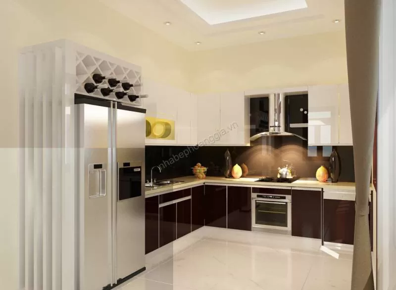 Tủ bếp gỗ Acrylic mẫu 09 Chất liệu: Gỗ công nhiệp được phủ 1 lớp Acrylic 1,5 mini mét Phong cách: Hiện đại Tư vấn thiết kế sản xuất bởi nhabephoanggia.vn.Shipping/Vận chuyển