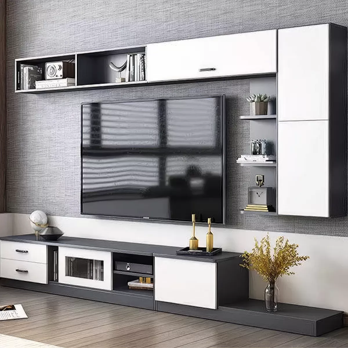 Tủ Để Tivi Phòng Khách Bằng Gỗ Công Nghiệp Kết Hợp Cánh Kính Cao Cấp
