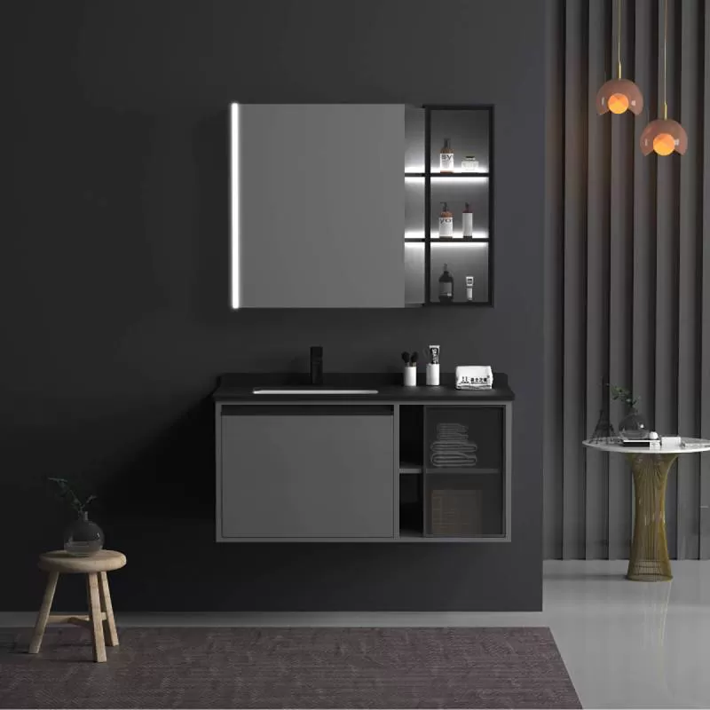Tủ Lavabo treo tường phòng tắm Mowoen MW6635B 100 nhập khẩu. Chất liệu Plywood phủ Laminate chống nước hiệu quả. Gương phôi Bỉ chống ẩm mốc, tích hợp đèn LED tiện nghi