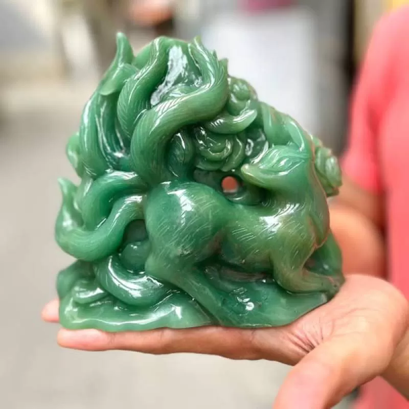 Tượng Hồ Ly Thạch anh xanh được tạc tay từ đá tự nhiên nguyên khối, nhận đặt hàng theo yêu cầu. Cam kết về chất lượng hoàn toàn tự nhiên