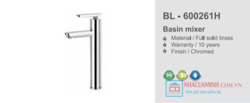 Vòi chậu rửa mặt lavabo cao BL - 600261H nhập khẩu chính hãng Tây Ban Nha, với liệu đồng thau cao cấp, lớp mạ sang trọng, thiết kế tinh tế, hiện đại. Vòi chậu Bello hiện được phân phối chính hãng tại Cường Quốc.