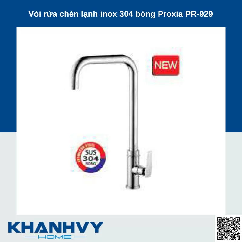 Vòi rửa chén lạnh inox 304 bóng Proxia PR-929 thân thiện với người dùng - môi trường, mang lại cho người sử dụng sự trải nghiệm hoàn toàn khác biệt và thân thiện với môi trường, đảm bảo đạt tiêu chuẩn chất lượng | Khánh Vy Home chuyên cung cấp các loại vòi rửa từ nhiều nướ