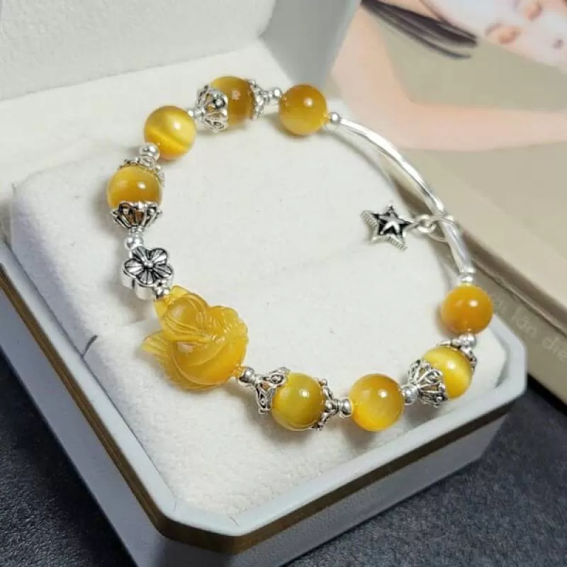 Vòng Tay Mắt Hổ Vàng Tâm Mix Hồ Ly Và Charm Bạc