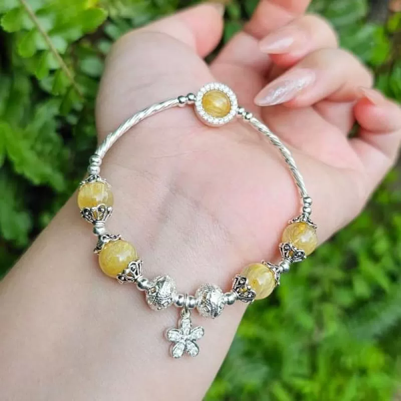 Vòng Tay Thạch Anh Tóc Vàng Mix Charm
